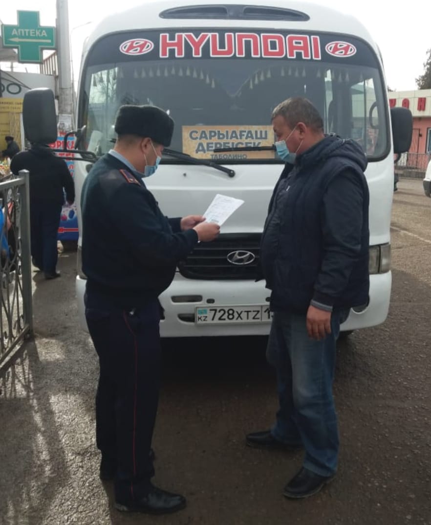 Мысалы, Сарыағаш қаласының Майлықожа көшесінің бойынан «Газель» маркалы қоғамдық көлігін тоқтатып, тексеру барысында қосымша екі орындық орнатып алғаны анықталды. Сонымен қатар «Газель» маркалы автокөлігі Сарыағаш автобекеттеріне тіркелмей, жолаушыларды заңсыз тасымалдап жүргені белгілі болды. Осы жайттарға байланысты әкімшілік хаттамалар түзілді.