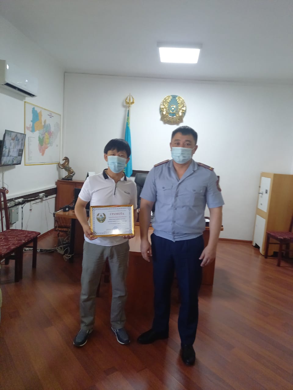 Қазығұрт АПБ-ның бастығы полиция подполковнигі Ерлан Тасболатов Түркістан облысы Полиция департаментінің бастығы, полиция генерал-майоры Қайрат Дәлбековтің атынан алғыс хат тапсырды — деп хабарлайды 102info.kz ақпарат агенттігі Түркістан облысы полиция департаментіне сілтеме жасап.