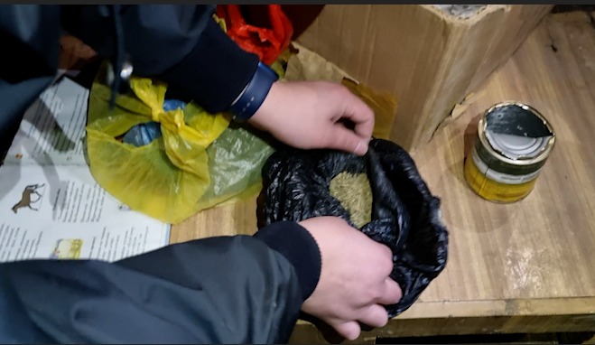 Осылайша есірткі сатушының үйін тінту кезінде полицейлер, оның сарайынан ерекше хош иісі бар есірткі затына ұқсас екі полиэтилен түйіншегін тәркіледі. Алынған заттай дәлелдемелер сараптамаға жіберілді. Қорытындыға сәйкес, есірткінің жалпы салмағы 200 грамм болатын марихуана болып шықты.