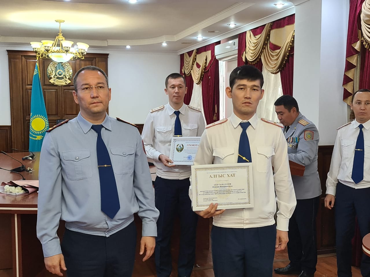 Атап өтер болсақ, ҚР Ішкі істер министрінің атынан «Құрмет грамотасын» Айдауыл қызметі взводының полиция аға сержанты Әмит Думан иеленді. «ІІО-ның үздік қызметі үшін» төс белгісін Әл-Фараби АПБ кезекші бөлімінің бастығы полиция майоры Тілеубергенов Нұрболат пен ЖПҚБ патрульдік полиция полкінің аға инспекторы Усманова Нодира алды.